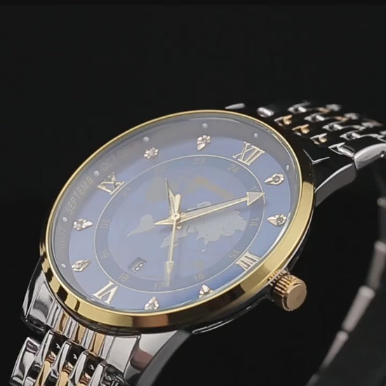 ⌚ Estilo Clássico, Sofisticação Contemporânea: Com seu design atemporal e acabamento em aço inoxidável de alta qualidade, o Aurum Globe combina o melhor do estilo clássico com uma elegância moderna.